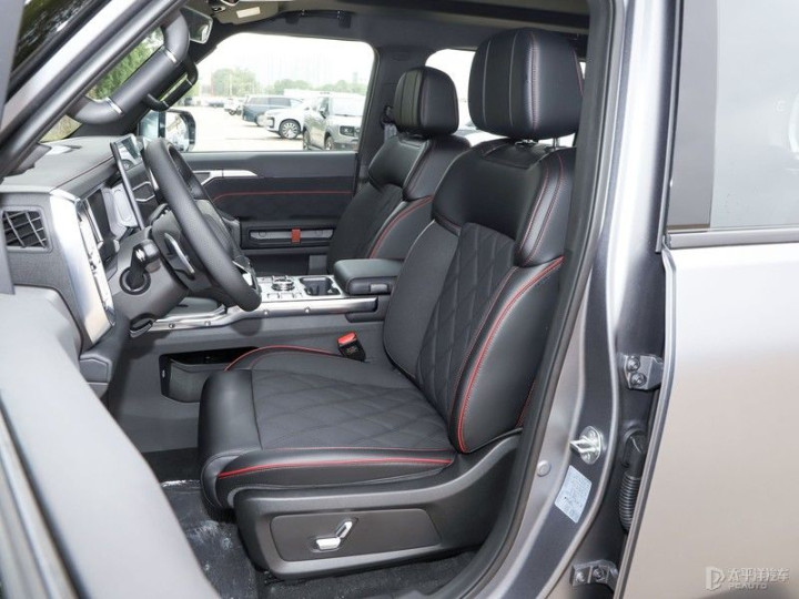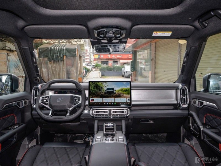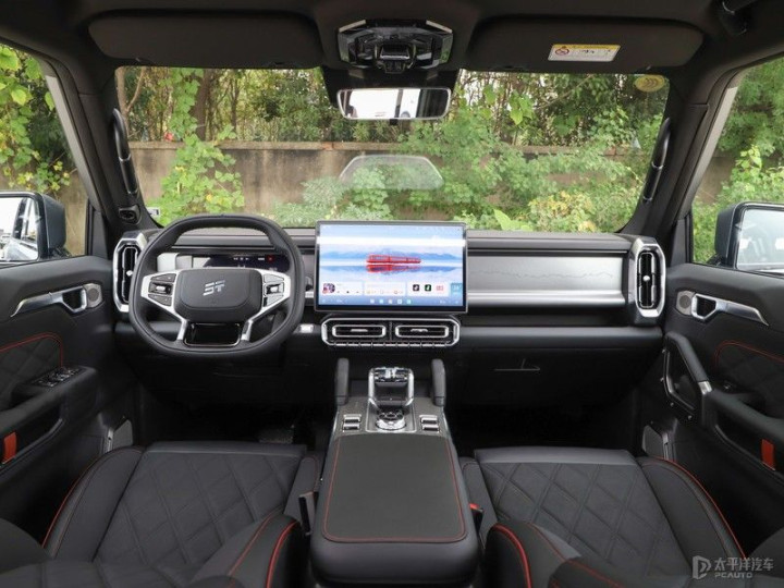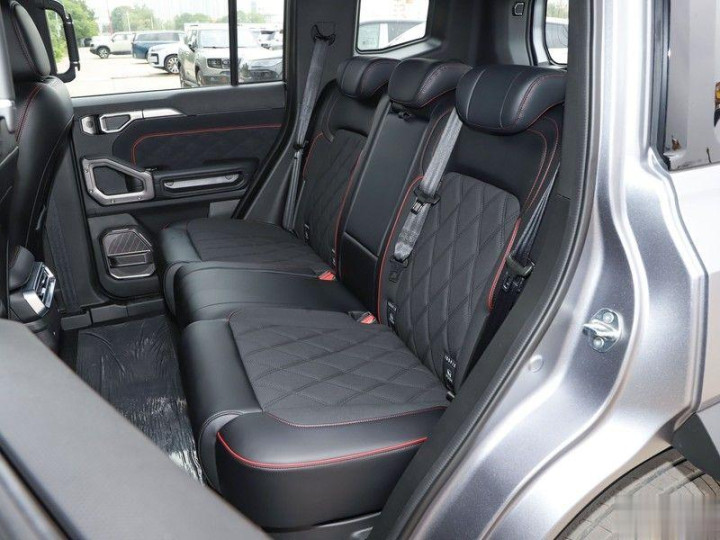 内饰设计同样没有变化,但是在必要的地方新增了实体按键,提升便利的同时也让内饰的机械感更强,符合方盒子的趣味。例如增加了后视镜的实体按键以及中控台的实体按键,一些按键还采用了钻石纹理设计,并且布局合理化,这样一来在户外一些复杂道路上驾驶员可以进行盲操。此外门饰板增加了软包装饰,座椅采用了全新造型的菱形双排缝线,甚至立柱拉手都增加了细节装饰,整体内饰质感进一步提升。